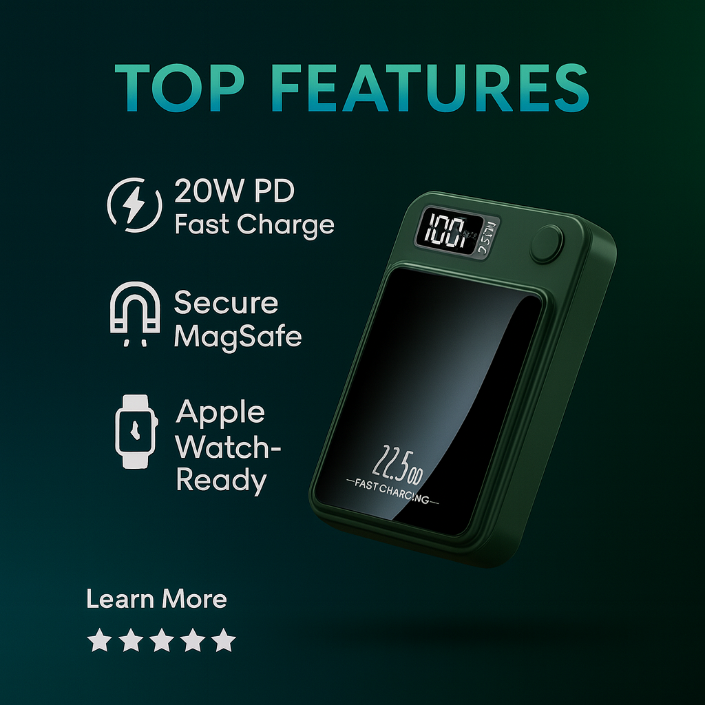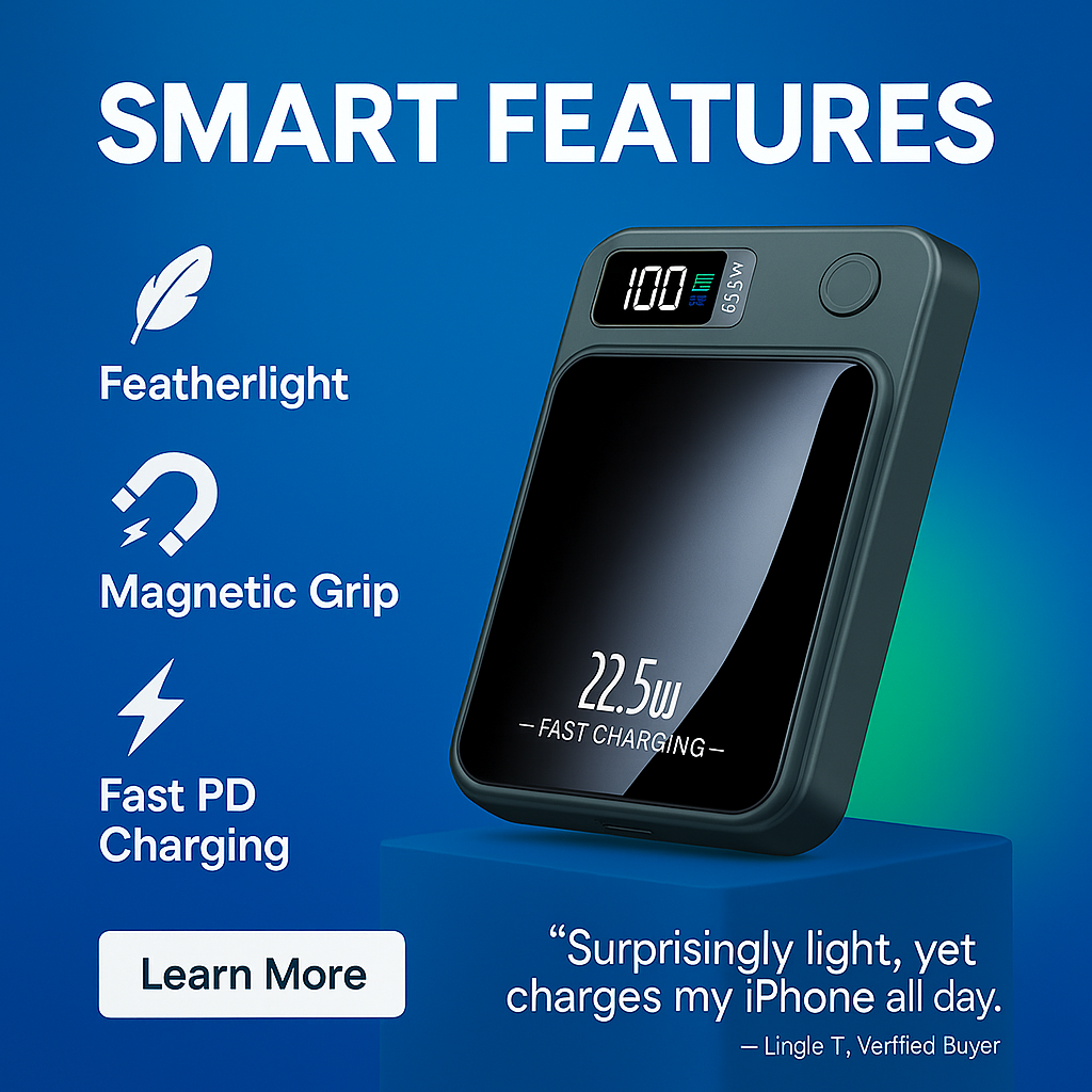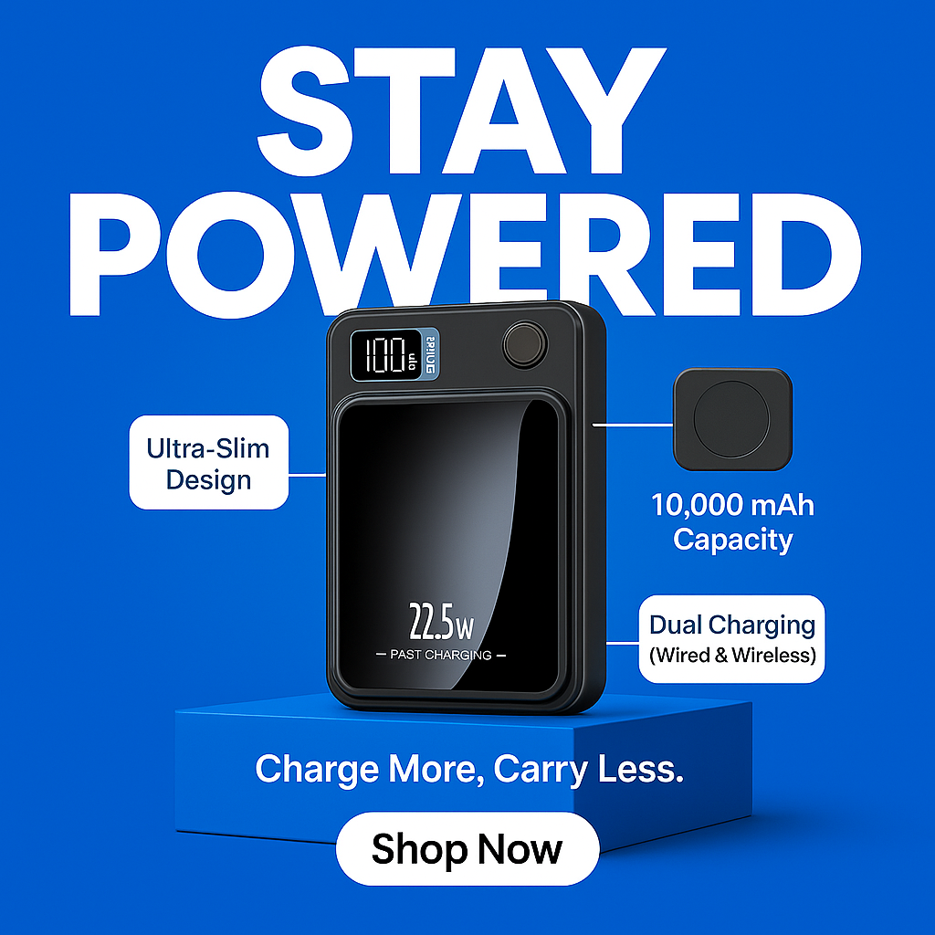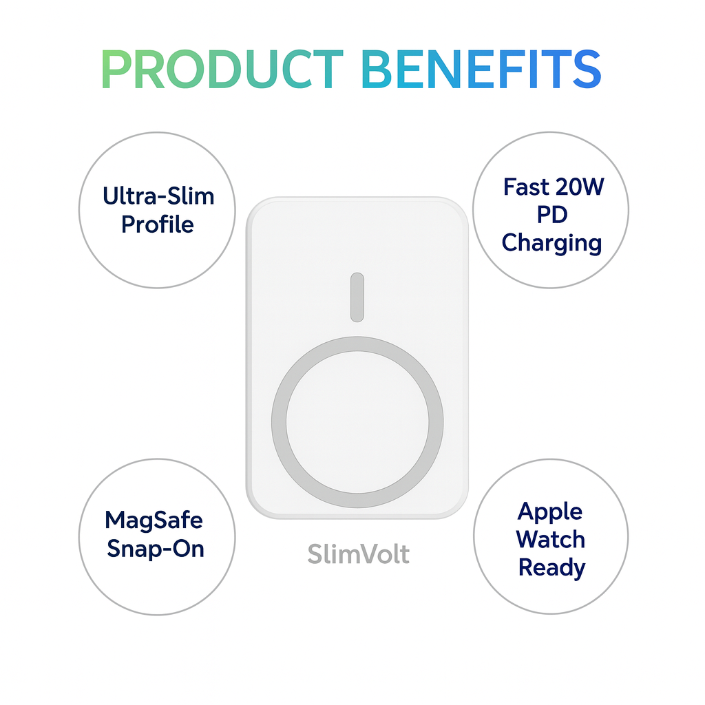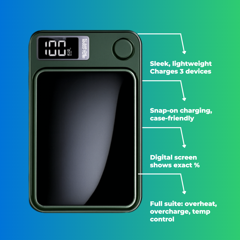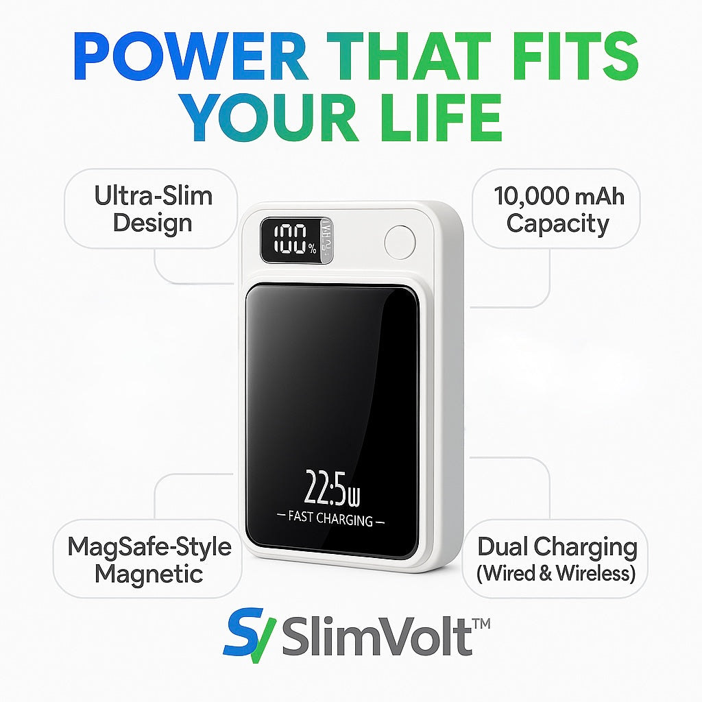 Meet SlimVolt™, your sleek, magnetic lifeline that keeps all your devices ready, wire-free.